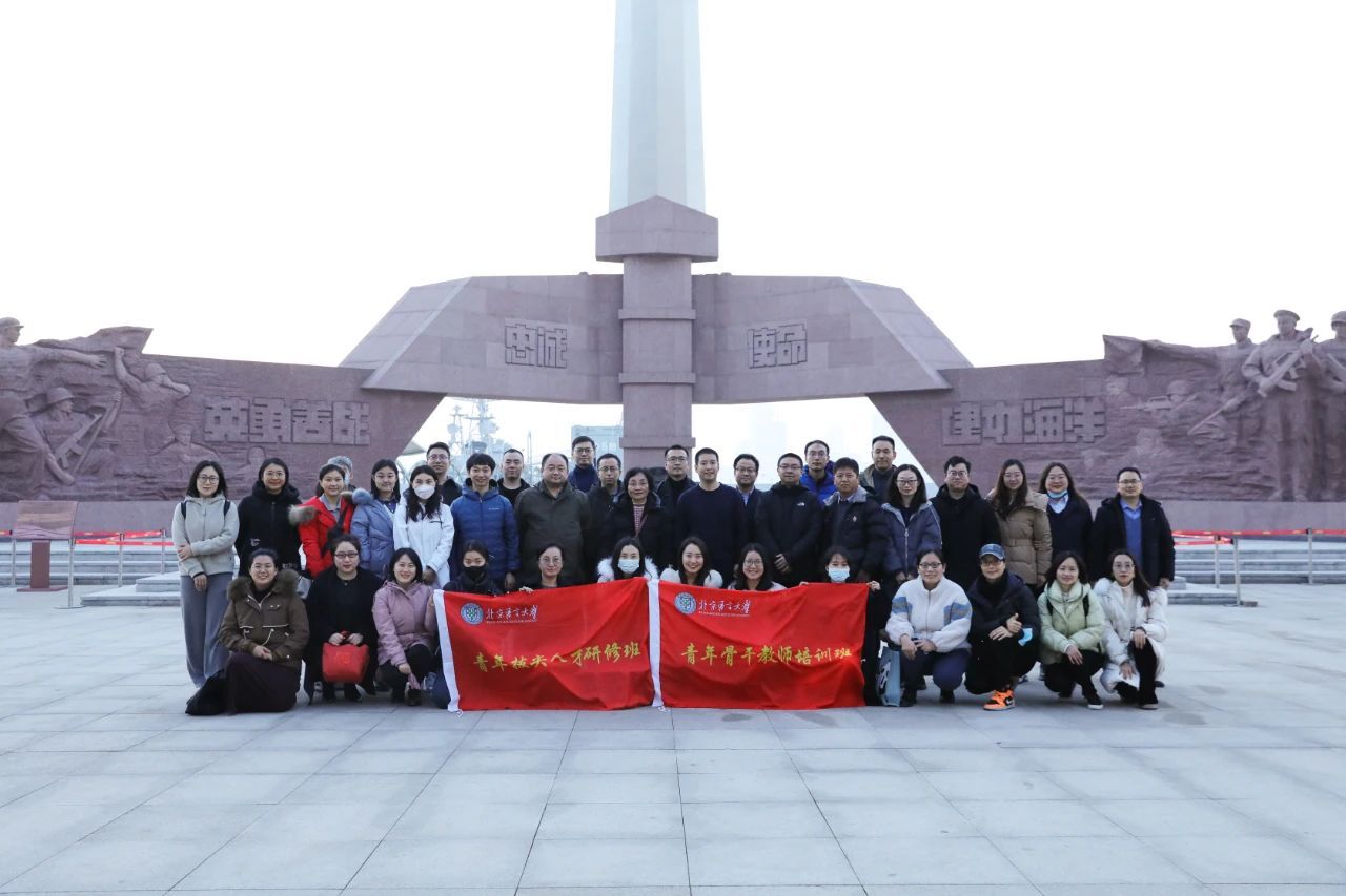研学团前往中国人民解放军海军博物馆开展了一堂“沉浸式”国防教育实践课。沿着历史脉络,依次参观了室内、海上、陆上三大展区,通过观看文物展品、档案史料、视频影像,全方位了解了人民海军在中国共产党的领导下,从创建初期的艰苦历程到如今的现代化建设成果。青年教师驻足凝思,一同近距离回望砥砺奋进的峥嵘岁月,深入学习人民海军建设过程中的光辉历程,从一段段历史、一件件文物中厚植家国情怀,汲取奋进力量。