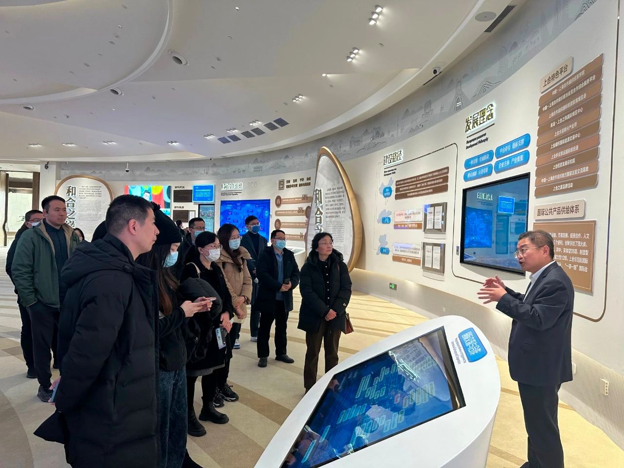 在青岛西海岸新区城市之窗展览馆,研学团详细了解了西海岸新区的历史沿革、城市发展规划、现代产业体系建设以及四大国家战略、四张国际名片、十大功能区等内容,深入了解了国家级新区跨越式发展的新模式和城市能级提升的新成果。青年教师对新区的区情有了全面认识,希望未来在国际交流与合作、涉外人才培养、多语种翻译服务等方面与新区展开交流合作,更好发挥校地合作效能,助力青岛国际化创新型城市建设。
